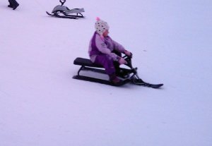 Minä oikeastaan vihaan pulkkamäkeä. Pulkkamäki = selkä, naama ja kengät täynnä lunta ja vaatteet märkinä ja peppu kipeänä. Joten pyrin pysyttelemään mäen alla katsomassa tyttöjeni mäenlaskua. Suostuin kuitenkin lopulta molempien kanssa laskemaan kerran. Ja esikoisen kanssa se menikin mallikkaasti, mutta tosikoisen kanssa ei ihan niin. Tosikoinen halusi laskea kanssani stigalla ja se olisikin ollut ihan jees, jollei mäki olisi ollut niin pahuksen pomppuinen! Mutta pomppuinen kun oli, pomputtivat pomput minut lopulta pois stigan selästä, jolloin tosikoinen menetti sen ohjauksen, meni mukkelis makkelis ja löi päänsä.