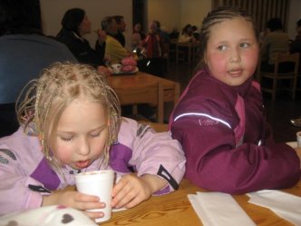 Kotimatkalla soitin miehelle (heti kun sain sormet toimimaan niin paljon, että pystyin käyttämään kännykkääni…), että laittaa takan päälle, tulossa on vähän syväjäätynyttä väkeä. Joten himaan päästyämme linnoittauduttiin itse kukin takan ääreen defrostautumaan. Tai esikoinen linnoittautui. Tosikoisella ei ollut yhtään kylmä ja minä vaihdoin ensin kuivaa ja lämmintä ylleni sekä pelastin märän kameran takanreunukselle kuivumaan, ja asetuin sitten minäkin takan ääreen. Lämmintä ruokaa, lämmintä dooleys-venäläistä ja vähitellen alkoivat luutkin sulaa.
