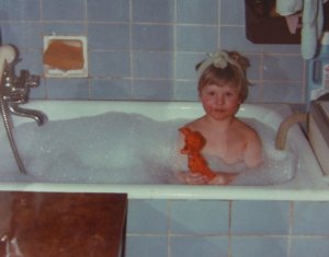 Samalla löytyi laatikoista ne loput albumit, joita en silloin pari viikkoa sitten (vai milloin se olikaan…) löytänyt. Ja sieltä, kun selailin ohimennen albumeja läpi, bongasin sen vaahtokylpykuvankin, jota koitin turhaan löytää isoäitini luota kesällä (http://marilkap.spaces.live.com/blog/cns!FAE55F053410C209!1609.entry):