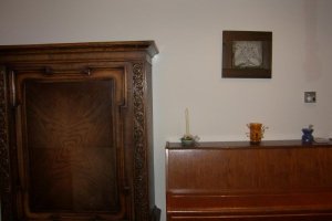 Kuljetusfirma siirsi eilen meille faijan entisestä asunnosta massiivisen perintökaapin, kokopuuta ja komea. Ja kun viime viikonloppuna hilattiin miehen kanssa piano paikalleen – kaappi tuli sen kanssa samalle seinälle – on olohuone saanut taas harppauksen verran omaa ilmettään. Tänään sain ahaa-elämyksen siitä, mitä sieltä vielä puuttui. Monta päivää minua vaivasi ajatus siitä, että jotain upuu. Tänään sen viimein hogasin miehen ja esikoisen pelatessa siellä lattialla Muumi-Yatzya. Se kaipasi kunnon isoa rahia takan eteen. Ja sellaisen se sai!