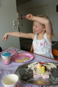 Hilppasen jo väsyttää. Koko viikonloppu on ollut yhtä juhlimista ja juhlien valmistelua. Tai ehkä oikeammin jo torstaista asti, kun töiden jälkeen piipahdin Alepassa kotimatkalla, ostamassa paistovalmiita sämpylöitä ja lämminsavulohta päivälliseksi. Silloin oli tosikoisen virallinen synttäripäivä, jota juhlistettiin illalla oman perheen kesken syömällä vähän erilainen päivällinen ja jälkkäriksi ihan kaupan kakkua. Leipomiset jätin viikonlopulle. Tosikoinen sai tuolloin myös meidän lahjat: baletti-bratzin ja kampauspään, sekä siskoltaan LPS-sammakoita.