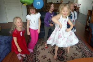 Kahden aikaan tulivat tosikoisen kaverit. Ei niitä synttärivieraita ollut kuin neljä, mutta kyllä noista pienistä tytöistä silti ääntä lähtee! Hirvittävä kalkatus koko ajan 😀 Kyllä niillä tuntui hauskaa olevan, mutta kyllä ne toisilleen myös motkottivat kaikesta. Synttärit aloitettiin perinteiseen tapaan pullonpyörityksellä, sitten luotsasin lapset syömään Minni-jätskikakkua sun muuta. Sen jälkeen otti esikoinen ohjat käsiinsä ja leikitti koko porukkaa. Leikkivät peiliä ja väriä ja ketun ruoka-aikaa ja tanssiskabaa, joka tuntui olleen hauskin kaikista. Ja sitten olikin kaikki janoisia, laitoin lapsille ne pirtelöt.