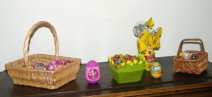 Kun synttärivieraat oli haettu, koristelivat tytöt niitä pajunoksia minun uurastaessani keittiössä. Lauantai-iltana tein pari Pätkiskakkua, täytekakun pohjan (ja täytinkin sen) sekä macaron-leivoksia. Sunnuntaina jatkoin siitä mihin lauantaina olin jäänyt kuorruttamalla ja koristelemalla kakut, heti kun olin ensin tehnyt läjän tuulihattuja suolaisin täyttein. Tytöt kävivät sillä välin virpomassa ja palasivat ison palkkakorin keralla kotiin. Ja kun päälle laitetaan tuparilahjojen mukana tulleet pääsiäisherkut, on meillä nyt pääsiäismunia varmaan muutamaksi vuodeksi 😀