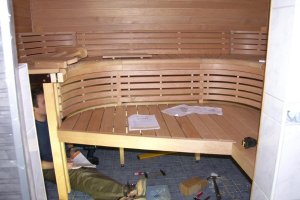 Mies on meistä ainoa, joka on tänäänkin ollut ahkera eikä loikoillut auringossa. Mies on rakentanut meidän saunaa – siellä on lauteet paikoillaan jo 🙂