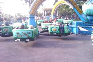 Puolilta päivin tultiin Linnanmäen porteista sisään. Koko jengille IsoHupi-rannekkeet – tosikoisellekin ekaa kertaa – ja menoksi. Kaikki laitteet )paitsi ne muutama, joita ei haluttu) käytiin. Tosikoinen nautti, kun pääsi kaikkiin niihin vekottimiin, joista on edelliset kesät saanut vain haaveilla isosiskon kertoessa, kuinka hauskoja ne on. Esikoinen tunsi kummaa vetoa Kieputinta kohtaan, mutta järkevästi tuumasi kuitenkin odottavansa vielä muutaman vuoden ennen 140+ -laitteisiin menemistä, vaikka pituus olisikin jo riittänyt. Minä ja mies käytiin ne kaikki.