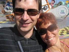 Lasten lemppareita oli Salama, Vuoristorata ja Tulireki. Ja "Lentopraitti", kuten tosikoinen Enterpriseksi tituleeraamani Kehrää kutsui. Ja tietenkin ne kastumislaitteet. Käytiin ensin Hurjakuru, jonka jälkeen oloni märän takapuolen kanssa oli jotensakin epämiellyttävä, muttei kovin kummoinen. Samoilla kastumisilla ajateltiin selvitä Vonkaputouskin, mutta satuttiin tosikoisen kanssa olemaan kohdassa, jossa roiskui ja paljon – sen jälkeen olin kuin olisin ollut vaatteet päällä uimassa. Hetken palelsi kovassa tuulessa (jonka vuoksi näköalatorni oli suljettu, hassua kyllä, kumpikin tyttö olisi suorastaan halunnut siihen!), mutta pianpa se aurinko kuivatti vaatteeni. Miehen harmiksi, märkä oli kuulemma seksikästä 😉