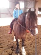 Ratsastustunnin ratsastusosuus oli vielä tällä kertaa melko lyhyt, sillä aika meni enimmäkseen siihen tallipuuhasteluun vielä, mutta toki lapset ratsaillekin jo pääsivät ja muutaman kerran kiertämään maneesia lähtöä ja pysäyttämistä harjoitellen. Vanhemmat rundasivat ponien vieressä huolehtien taluttamalla vielä käännöksistä ja siitä että ratsut pysyivät uralla. Ensi kerralla sitten harjoittelevat itse sitä hepan kääntämistä ja ilmeisesti vähän raviakin.