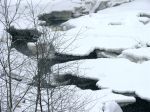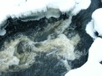 Nurmijärvellä tein pit-stopin Myllykukkoon, Kotipizzaan nauttimaan yhden Berlusconi Kotzonen oman kunnon kohotukseksi. Pizza vazzassa ajelin hämeenlinnanväylän toiselle puolelle vielä kuvailemaan vähän puolijäistä Myllykoskea. Joku oli kuljeksinut pitkin kosken jäitä, avanteiden seassa, en olis kyllä minä arvannut jalallani niille jäille astua. Mutta komean näköistä se oli, se puolijäätynyt koski!