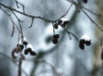 Siinä vaiheessa kun palasin autolle, olivat sormeni jo niin kohmeessa, että hädintuskin pysyivät autonavaimet kädessä. Minä siis oikeasti tarvitsisin talvella aina käteeni jotkut nahkakintaat selvitäkseni! Mutta kun ne on hiukka kömpelöt kameran kanssa… Lunta oli kävelyni aikana tuiskuttanut auton päälle taas niin että jouduin sutimaan vähän ikkunoita puhtaiksi että näin peruuttaa pois parkkipaikalta – heti kun auto oli ystävällisesti käynnistynyt, vähän se taas köhi.
