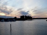 Aurinko alkoi olla jo melko alhaalla, pieniä pilviverhoja oli alkanut kerääntyä taivanrantaan ja kevyt tuuli puhaltaa. Kaulalla tuntui vilpoinen tuulenvire. Eikös siinä pitänyt olla huivi pitämässä kylmää loitolla? Oli ainakin vielä hetki sitten ollut! Kirosin hiljaa mielessäni, vein ostokseni hotellihuoneeseeni ja lä hdin takaisin keskustaan aikomani kävelylenkin sijaan. Tai no, ennenkuin pääsin kivempiin maisemiin, mutta silloin oli kello jo sen verran ilta, etten ihan Nallikarille asti viitsinyt kävellä vaan kiersin rantapolkua pitkin sen ensimmäisen saaren sillä suunnalla. Siis sen jälkeen kun olin kiertänyt kaikki aiemmin käymäni kaupat ja sovituskopit, turhaan, löytämättä lempihuiviani 😦 Ilmeisesti se oli ollut jonkun muunkin mieleen.