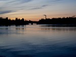 Ei siinä sitten mikään auttanut. Sytytin tupakan harmitukseen ja suuntasin kulkuni sillan yli rantapolulle, nahkarotsin vetoketju ylös asti kiinni. Laskeva aurinko sai maailman hehkumaan vaaleanpunaisena ja oranssisena ja kauniina. Vesi kimalteli melkein tyynenä pienestä tuulenvireestä huolimatta. Kännykkäni piipitti saapuvaa tekstaria. Miesystäväni se siellä liittyi etänä seuraani 🙂 Nautin kävelystä, ilman huivianikin. Ja hotellille palatessani minun oli juuri niin vilu kuin olin aiemmin päivällä arvellutkin.
