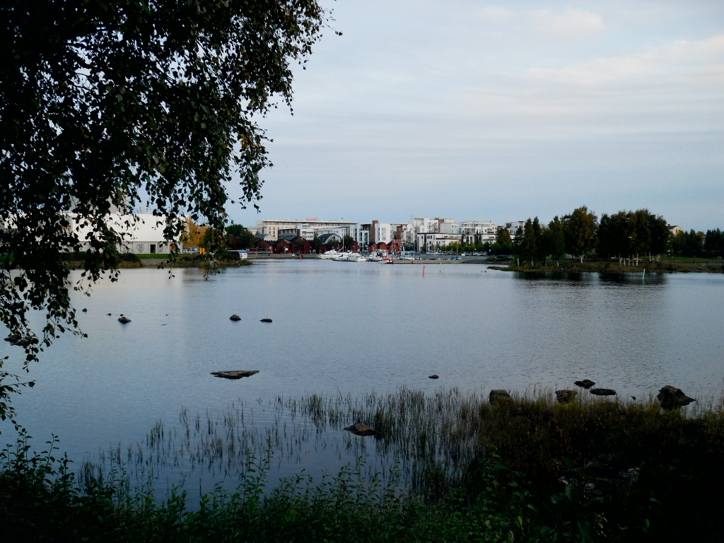 Aurinko alkoi olla jo melko alhaalla, pieniä pilviverhoja oli alkanut kerääntyä taivanrantaan ja kevyt tuuli puhaltaa. Kaulalla tuntui vilpoinen tuulenvire. Eikös siinä pitänyt olla huivi pitämässä kylmää loitolla? Oli ainakin vielä hetki sitten ollut! Kirosin hiljaa mielessäni, vein ostokseni hotellihuoneeseeni ja lä hdin takaisin keskustaan aikomani kävelylenkin sijaan. Tai no, ennenkuin pääsin kivempiin maisemiin, mutta silloin oli kello jo sen verran ilta, etten ihan Nallikarille asti viitsinyt kävellä vaan kiersin rantapolkua pitkin sen ensimmäisen saaren sillä suunnalla. Siis sen jälkeen kun olin kiertänyt kaikki aiemmin käymäni kaupat ja sovituskopit, turhaan, löytämättä lempihuiviani 😦 Ilmeisesti se oli ollut jonkun muunkin mieleen.