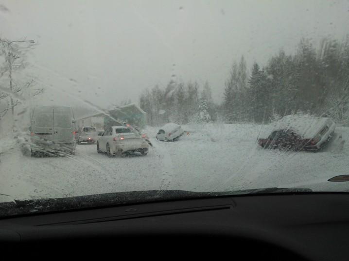 “Mikä teitä etelän ihmisiä vaivaa?” kyselivät pohjoisempien kolkkien asukit facebookissa. “Aina on noita kolarisumppuja kun vähän tulee lunta.” Yleensä olisin samaa mieltä – mikä meitä etelän ihmisiä oikein vaivaa, tulee se talvi tännekin (melkein) joka vuosi, luulisi että jo osattaisiin ajaa liukkailla. Mutta tänään en päivittele ihan niin paljon, vaikka henkilökohtaisesti tästäkin selvisin bussin pusua lukuunottamatta vaurioitta. Tänään keli oli extreme.
