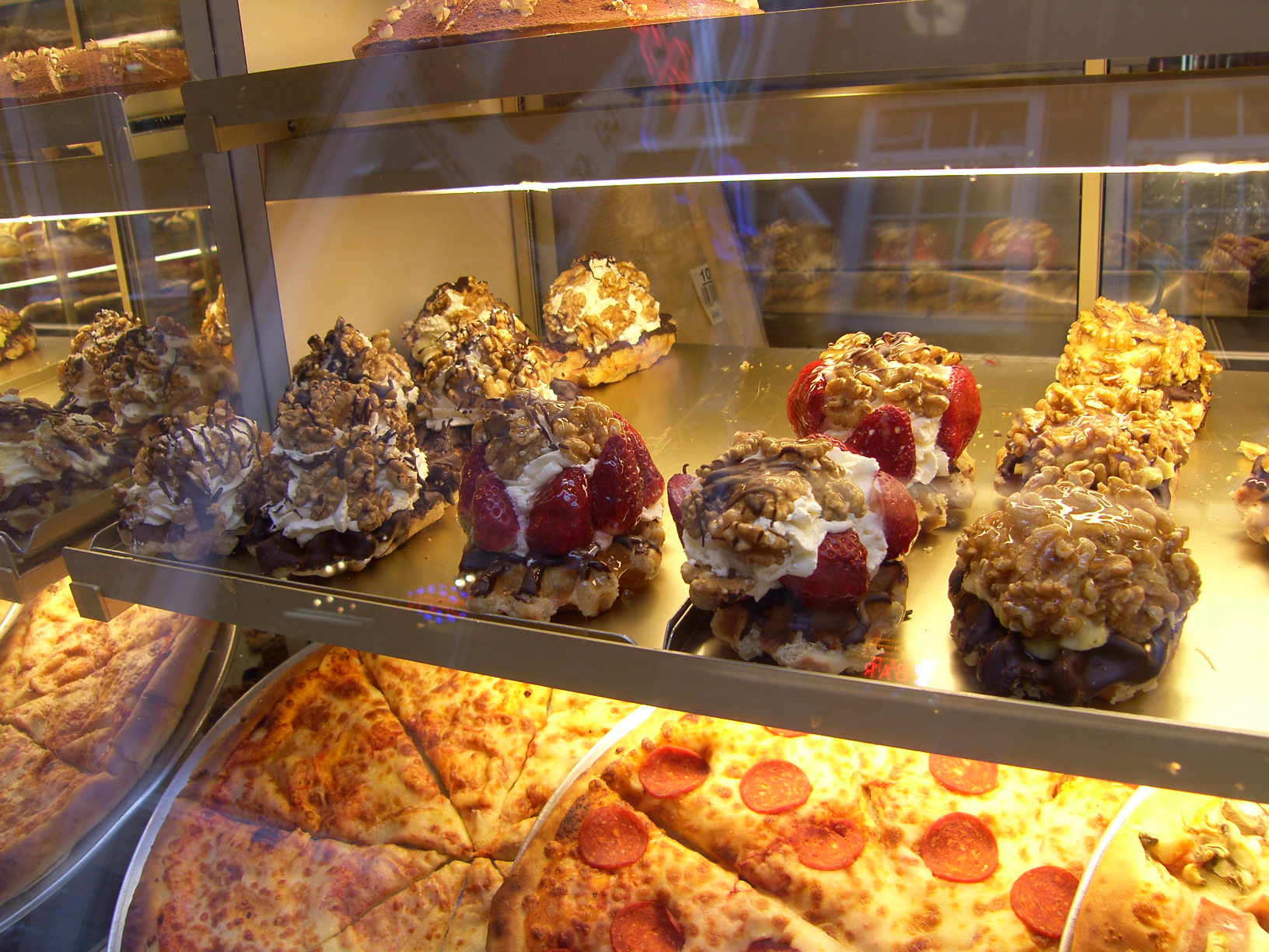 A couple times we stepped inside a coffee shop, to explore the atmosphere and to have a cappucino. The air in those places was thick with the smell of smoking weed, but it didn’t bother. Some were rolling and smoking their joints, some were eating space cakes and yet others were smoking water pipes. A world away from where I come from! Coffee shops of Amsterdam are far from the coffee shops of, say, Helsinki. You can get a cappucino or a latte or any other kind of coffee in them, sure, but the only pastry available is the space cakes. The pastry shops are a whole different thing with their massively topped waffles and pizza slices and all.