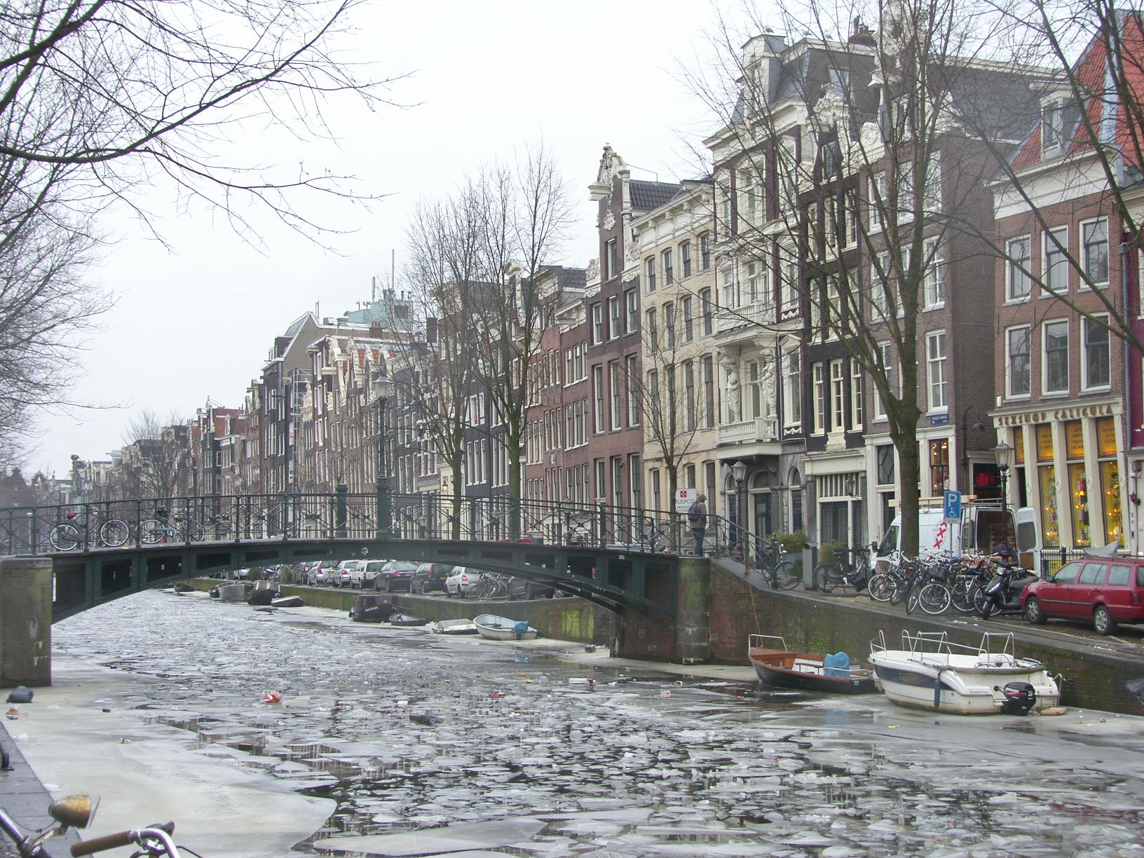 Only a few days before we entered the city, people had been ice skating down the canals of Amsterdam, for the first time in fifteen years! Even though the snow and ice and freezing weather of Finland was more than enough of cold, we had sort of hoped to get to go skating down the canals too. But by the time of our arrival, the weather had warmed up sufficiently to have started to melt the canals. So we went on a canal cruise on our last day there, instead. By then, the main canals had already melted enough to let those cruise boats plough through the still icy water.