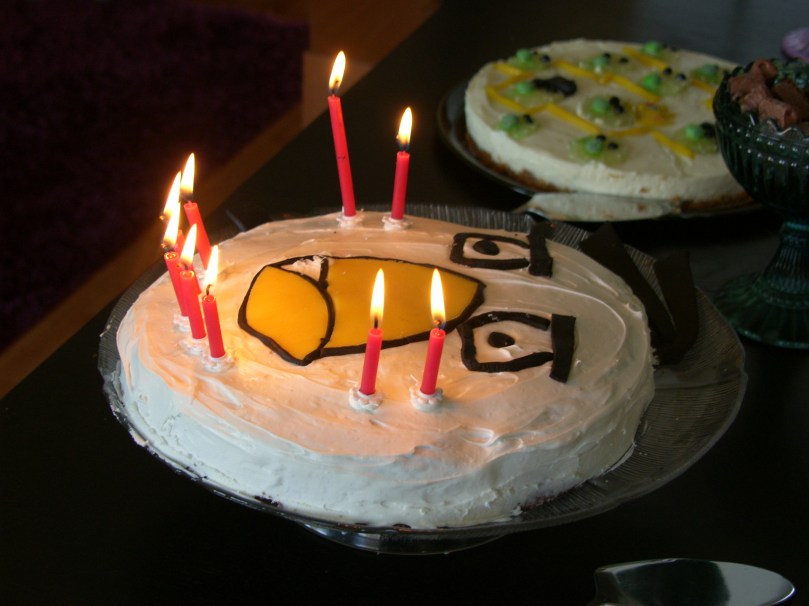Prinsessajutut alkavat olla melkoisen ohi jo tokaluokkalaiseltani, vaikka ne satunnaisesti vielä esiin pompahtavatkin leffoina ja leikkeinä. Mutta ei prinsessakakkuja eikä prinsessalautasia, ei edes prinsessamekkoa näillä synttäreillä. Sen sijaan typy pukeutui puolihihaiseen trendipaitaan ja polvista risoihin farkkuihin ja sipaisi synttärilahjaksi saamiaan meikkejä kevyesti silmiinsä. Ja taiteiltiin yhdessä ihanien isojen tyttärieni kanssa kaksi kakkua Angry Birds -teemalla, milläs muullakaan – juttu, joka tuntuu yhdistävän isot ja pienet ja pojat ja tytöt.