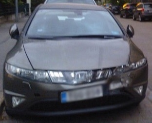 Ehdin nipinnapin takaisin peiton alle, kun kuului kunnon peltirysäys. Pomppasin pystyyn varmana, että nyt se oli autoni menoa! Ja niinpä olikin. Autoni oli puskettu päin takana ollutta. Näin kolmen kundin juoksevan melkoista haipakkaan kadulta poispäin, muuta en siitä ikkunasta huomannut – tai hogannut katsoakaan – ja meteli oli laantununt, joten ajattelin huligaanien vain tuupanneen jollain voimaeffortilla autoni kiinni siihen toiseen. Vetäisin farkut jalkaan ja puseron päälle, jätin kaiken tämänkin läpi sikeästi nukkuneen miehen jatkamaan uniaan ja painelin alas ihmettelemään vahinkoa.