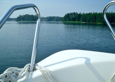 Kävipä nimittäin niin, että jouduinkin perumaan pöytävaraukseni (mikä sitten illemmalla ilmeni suorastaan hyväksi, olisi meidän auringonlaskusuunnitelmat olleet kerrassaan mytyssä), sillä nämä miehen tuttvat kutsuivatkin meidät saareensa viettämään iltaa ja grillailemaan. Auton nokka oli siis kohti Tammisaarta kyllä, mutta kurvattiin siitä vähän ennen kaupunkia kohti lossia ja venesatamaa, mistä isäntämme meidät noukki veneellään.
