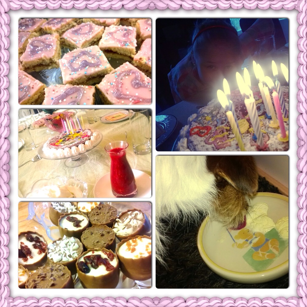 Sunnuntaina ei sateisuus niin haitannutkaan sitten enää, kun lauantain oli viettänyt ulkoilemassa, ja agendalla oli muutenkin vähän leipomista (tällä kertaa oikeasti vähän: tein vain aleksanterit itse), vähän siistimistä ja vähän synttärikahvitusta. Olin tehnyt päätöksen, että tällä kerralla kutsun vain lähimmän perheeni: isäni, isän vaimon, äitini (kun vielä sopivasti oli Suomessa, huomenna lentääkin takaisin Las Palmasiin!), isoäitini ja siskoni perheineen. Sisko perheineen oli kuitenkin kipeinä, eikä isän vaimo päässyt, joten meillä oli kolme synttärikahvivierasta vain tällä kertaa!