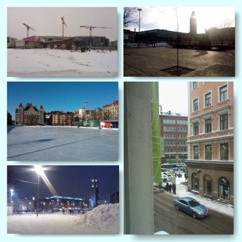 The downtown area evolves around the Central Railway Station and the square next to it (our office is just around the corner from there!), the Stockman (department store) area, and spanning towards Kamppi in the other direction, and the Kauppatori main market square in the other direction. The National Theater is by the railway station, and in the winter time there is an ice skating rink on the square. Not that I'd ever skated there; I'm not much for these winter sports (though I do know how to skate and ski, of course!).