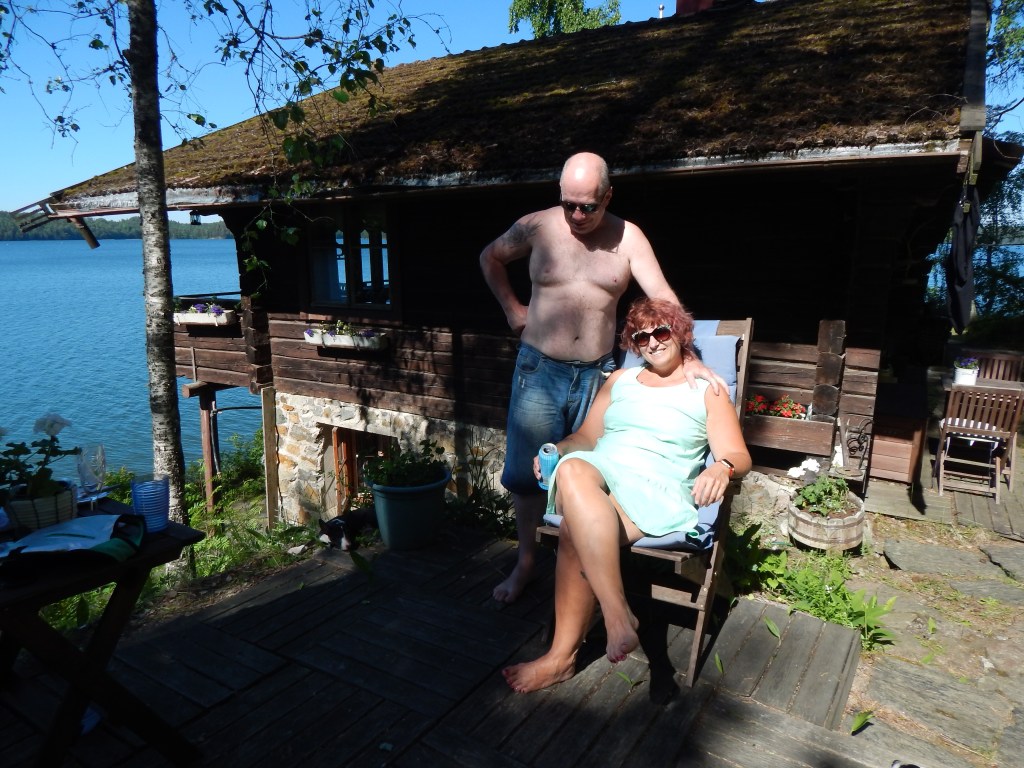 Nuoruusajat siellä mökillä taas kerran muutenkin tulvivat mieleen, kun saavuttuamme faija tarjoili lasilliset kuohuvaa (se perinne tosin alkoi vasta minun ollessani jo aikuinen) ja sitten nostimme yhdessä lipun salkoon synttärijuhlinnan kunniaksi. Siinä maljaa nostaessamme faija totesi, että tänä kesänä on toisenkin juhlan paikka, kun tuo mökki on ollut perheellämme heinäkuussa 70 vuotta.