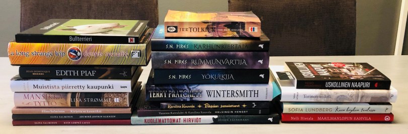 It’s book fair weekend in Helsinki and yesterday my husband and I braved the masses and went to the book fair. I equipped myself with a tote bag, but came home with two of them full of books. So there’s a lot of books for me to process before sticking them in my library!