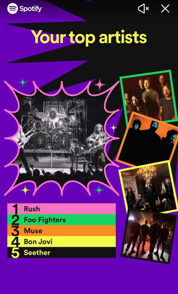 - “my main genre this year (too) was Rock, with Rush, Disturbed and Foo Fighters the top three – how did the Foos fall down to the third place?! In 2021 it was #1 with Rush holding the second place, then in 2022 the Foos were #2 with Rush at the top – I’ll blame it on the Spotify random generator, since I mostly played Liked Songs in shuffle mode”